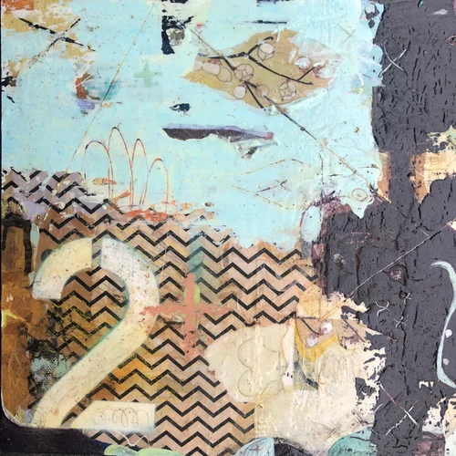 16” x 16” x 1.5”, encaustic mixed media.