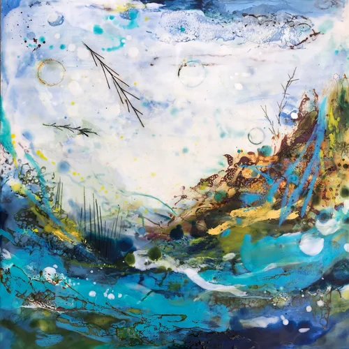 16”x16”x1.5”, encaustic mixed media.